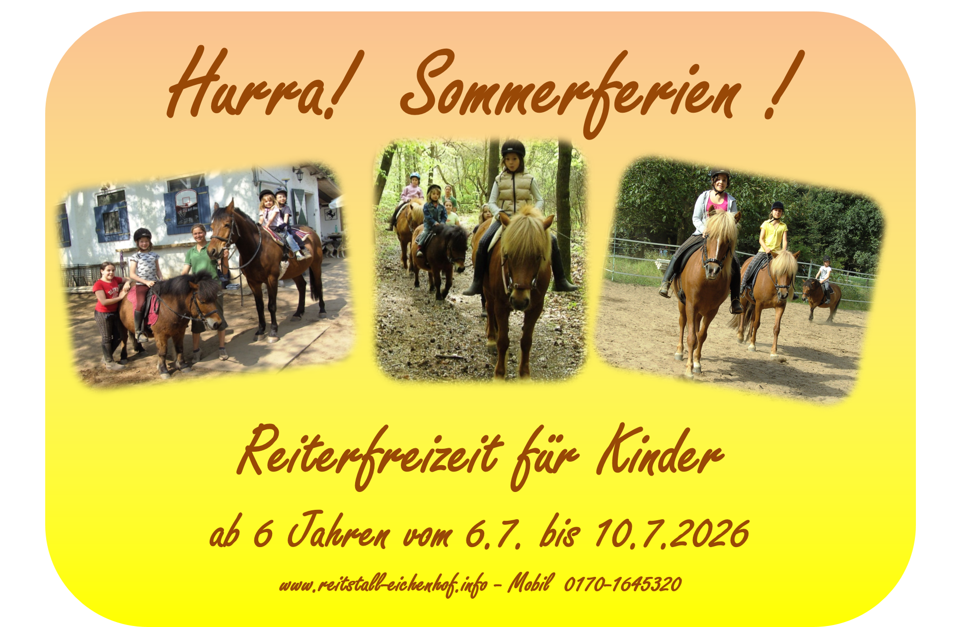 "Reiterfreizeit für Kinder Sommerferien 2026": 6.7. bis 10.7. (5 Tage)